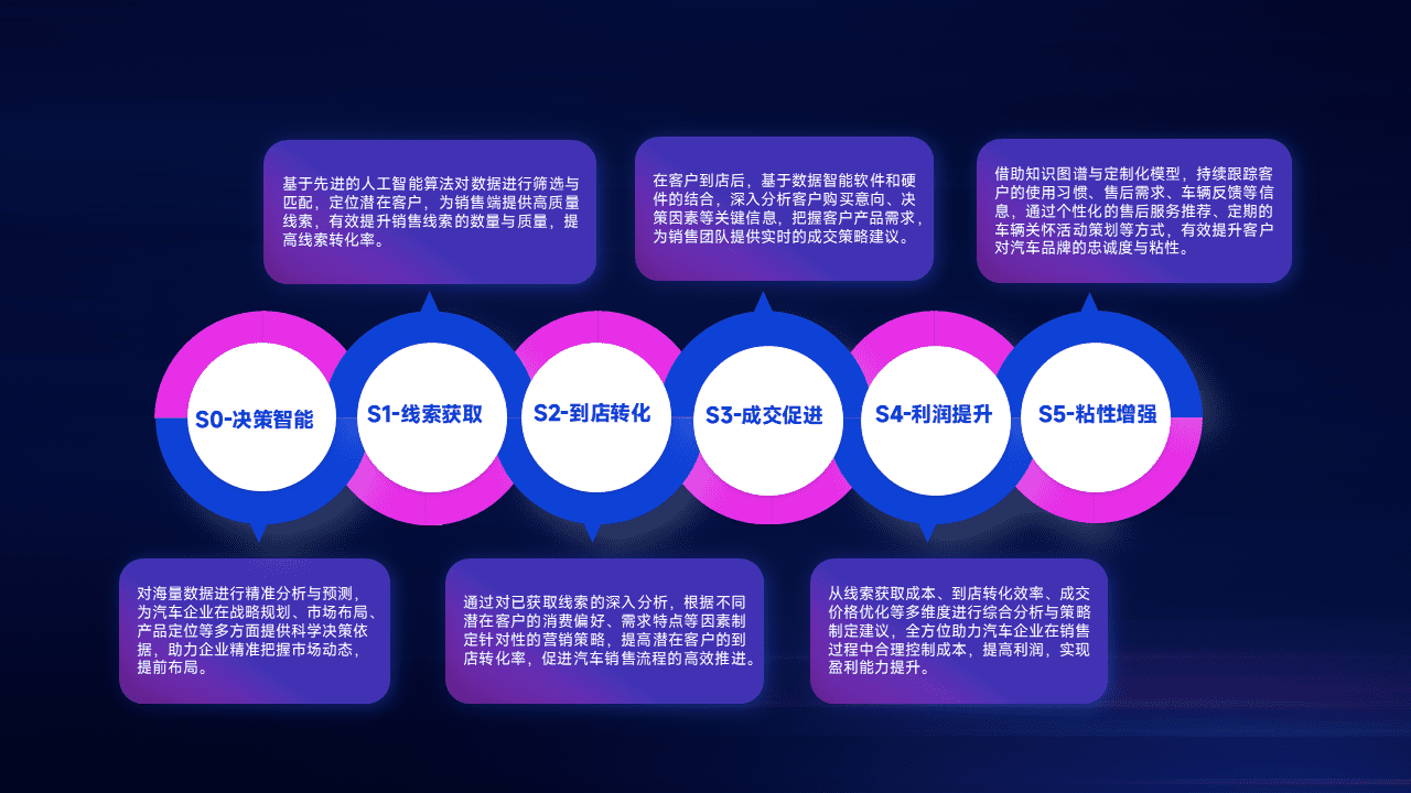 通过拓宽潜在客户来源、、、优化线索分配并提高到店转化率,,,,以增强销售效率。。同时,,利用线索数据不断优化分析模型,,有效提升转化率,,,扩大营销影响力。。。。